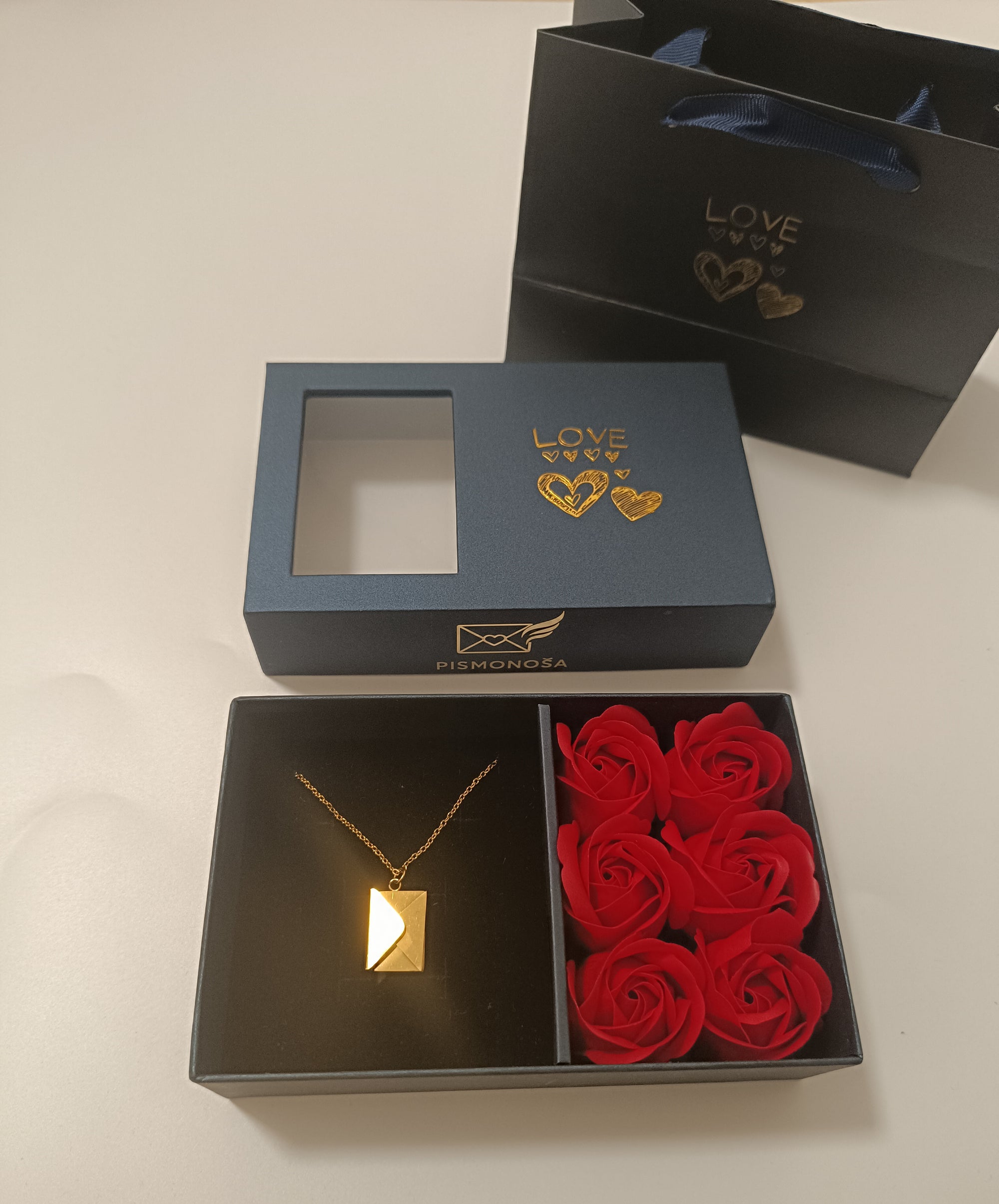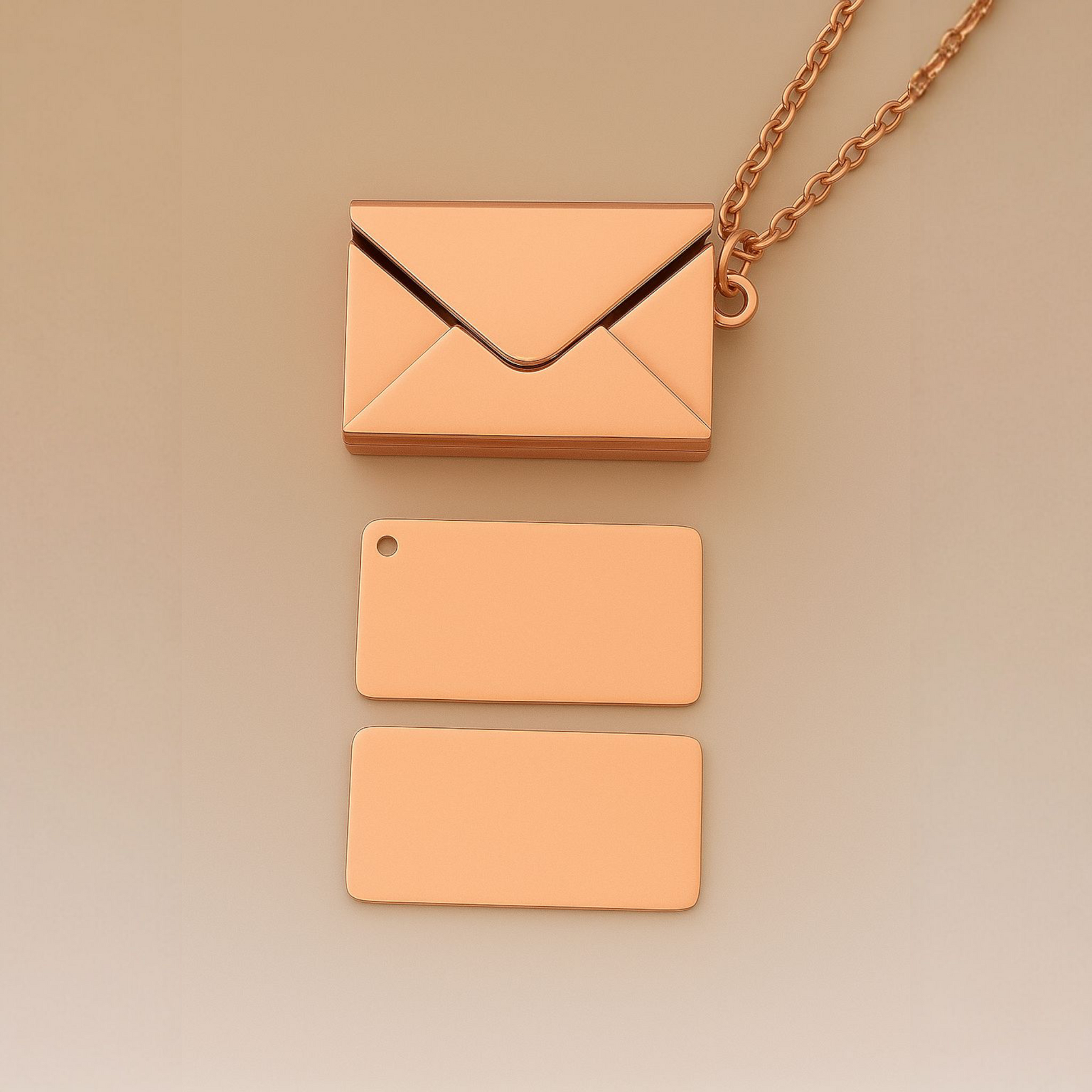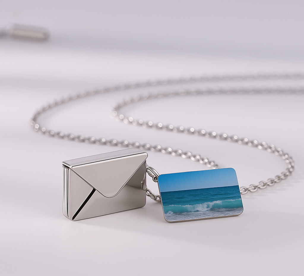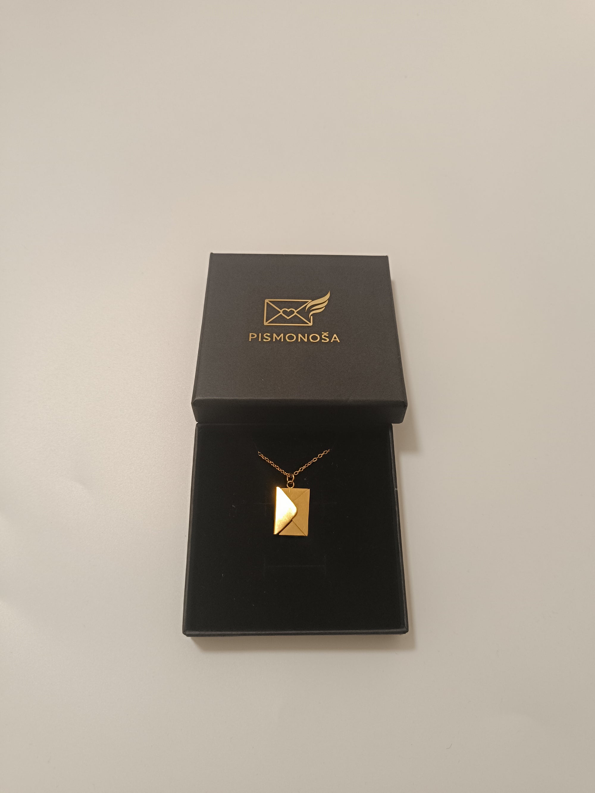 Pismonoša je elegantna ogrlica s minijaturnim privjeskom u obliku pisma koja čuva vaše najdraže uspomene. Svaki privjesak se otvara poput pravog pisma pomoću magneta i omogućuje umetanje male fotografije, poruke ili inicijala. Savršen i diskretan podsjetnik na posebnu osobu ili trenutak.